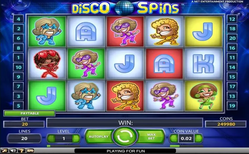 Disco Spins è una slot machine creata da NetEnt. In base al numero di giocatori che la cercano, Disco Spins non è una slot molto popolare. Questo, però, non significa necessariamente che sia una cattiva slot: provala e decidi tu, oppure esplora i giochi da casinò più popolari.
