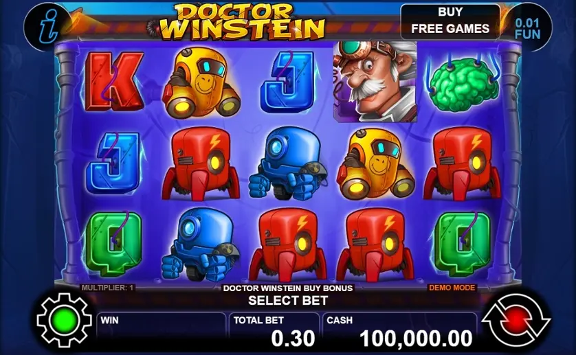Prova la slot online Doctor Winstein gratis in modalità demo, senza download o registrazione.