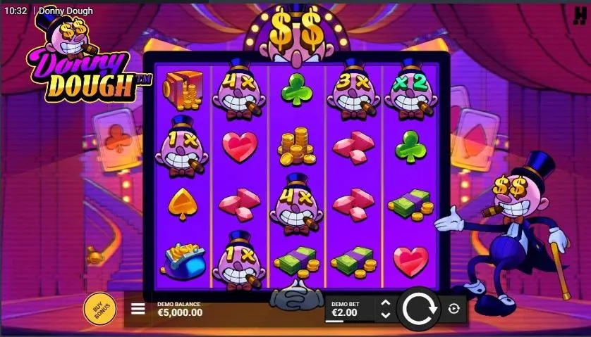 Donny Dough si prende la scena in questo gioco, a tema show, dotato di volatilità media e di un RTP del 96,23%.