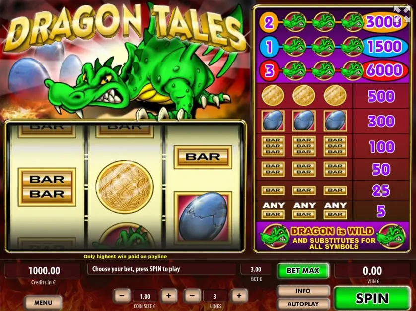 Prova la slot online Dragon Tales gratis in modalità demo, senza download o registrazione.