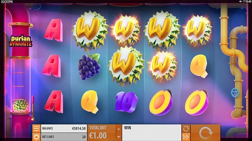 Durian Dynamite è una slot machine creata da Quickspin. In base al numero di giocatori che la cercano, Durian Dynamite non è una slot molto popolare. Questo, però, non significa necessariamente che sia una cattiva slot: provala e decidi tu, oppure esplora i giochi da casinò più popolari.