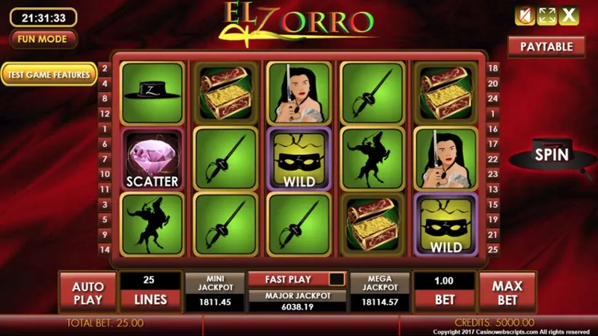EL Zorro è una slot machine creata da Casino Web Scripts. In base al numero di giocatori che la cercano, EL Zorro non è una slot molto popolare. Questo, però, non significa necessariamente che sia una cattiva slot: provala e decidi tu, oppure esplora i giochi da casinò più popolari.