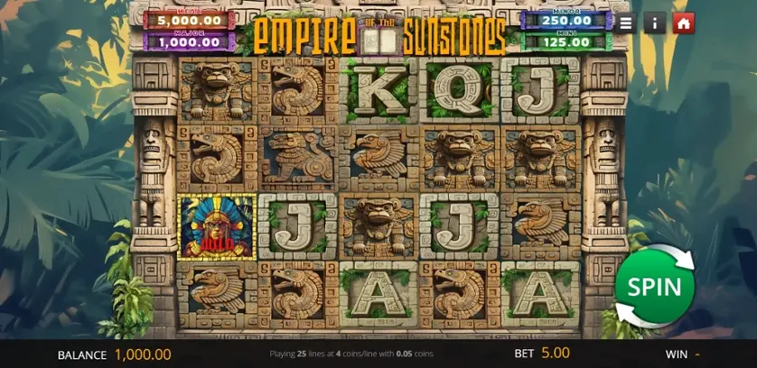 Prova la slot online Empire of the Sun Stones gratis in modalità demo, senza download o registrazione.