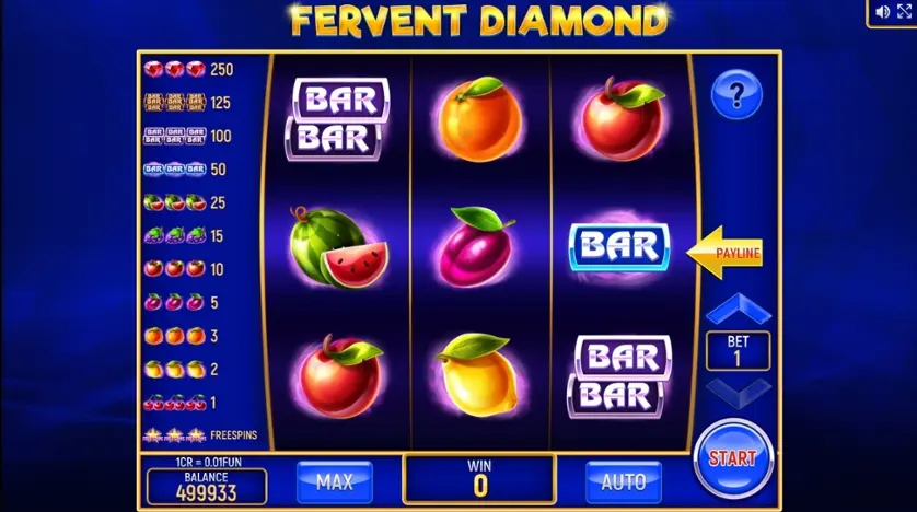 Prova la slot online Fervent Diamond (3x3) gratis in modalità demo, senza download o registrazione.