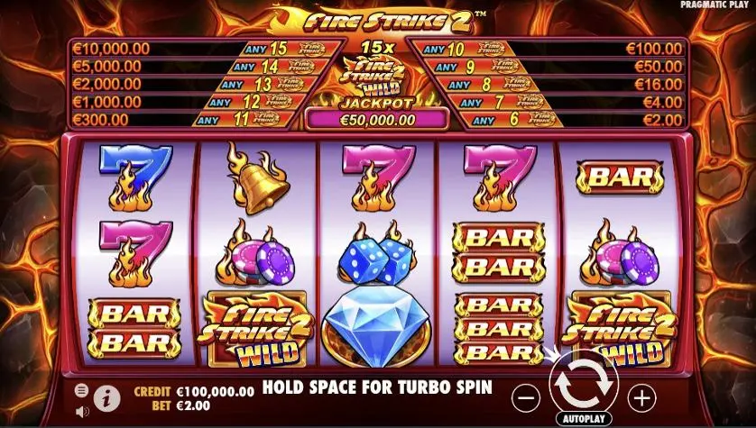 Prova la slot online Fire Strike 2 gratis in modalità demo, senza download o registrazione.