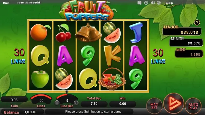 Prova la slot online Fruit Poppers gratis in modalità demo, senza download o registrazione.