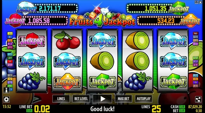 Prova la slot online Fruits 4 Jackpot gratis in modalità demo, senza download o registrazione.