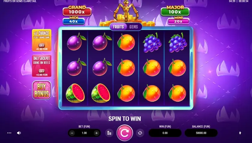 Prova la slot online Fruits or Gems: Clawctail gratis in modalità demo, senza download o registrazione.