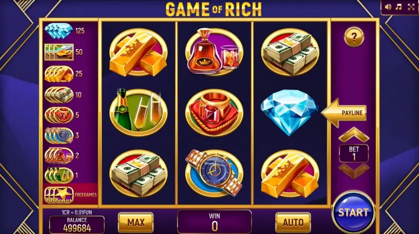 Prova la slot online Game of Rich (3x3) gratis in modalità demo, senza download o registrazione.