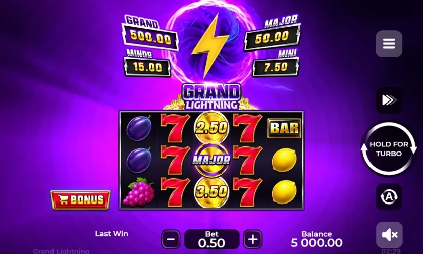 Prova la slot online Grand Lightning gratis in modalità demo, senza download o registrazione.