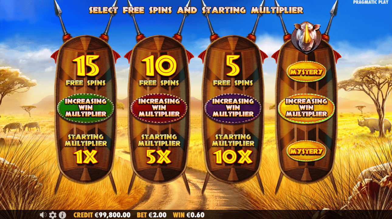 Dirigiamoci verso le pianure africane alla ricerca del grandioso rinoceronte in questa valida slot basata sul sistema Megaways con elevata volatilità e un RTP del 96,47%.