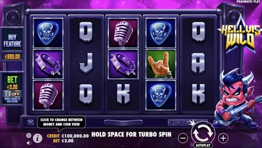 Tra i simboli del gioco, si troveranno lettere d’argento luccicante, microfoni e collari borchiati; tutti questi simboli potenziano il carattere heavy metal di Hellvis Wild.