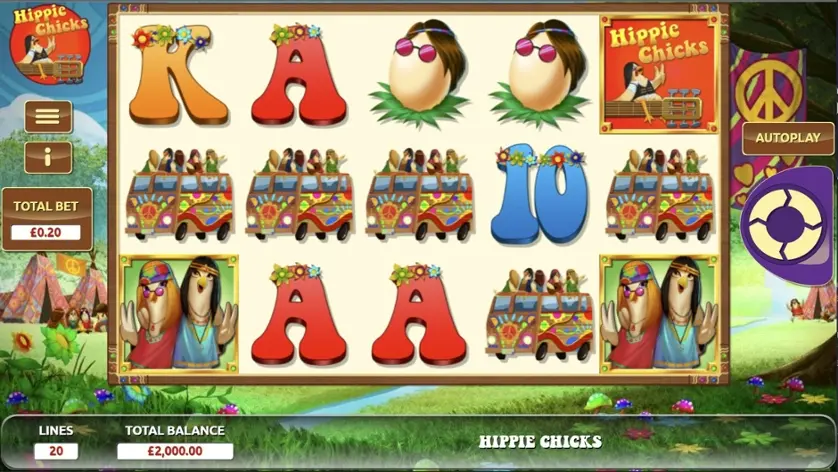 Hippie Chicks è una slot machine creata da Adoptit Publishing. In base al numero di giocatori che la cercano, Hippie Chicks non è una slot molto popolare. Questo, però, non significa necessariamente che sia una cattiva slot: provala e decidi tu, oppure esplora i giochi da casinò più popolari.