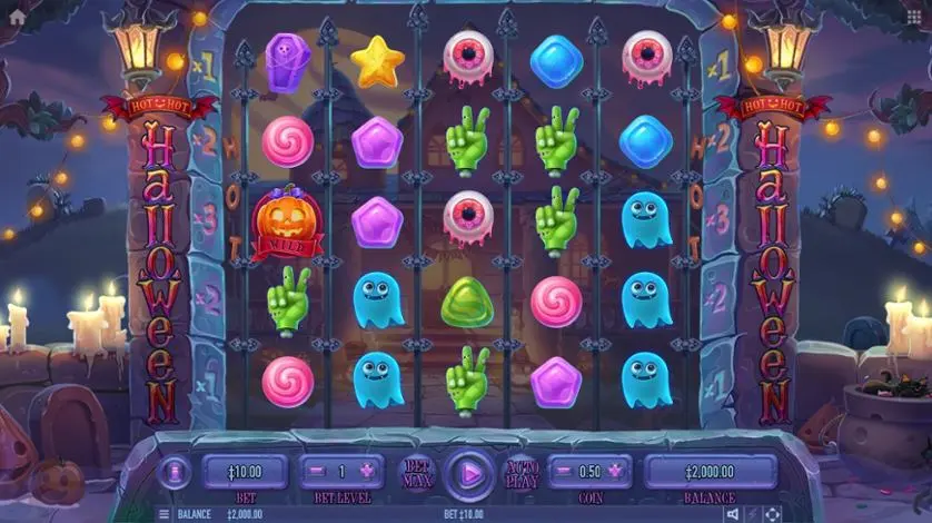 Se ti aspetti terrificanti gul e fantasmi, potresti dover ammorbidire un po’ le tue aspettative. Il contesto è quello di un cimitero in cui sono presenti alcuni gatti neri e zucche di Halloween - ma è qui che il tradizionale sentimento di Halloween trova la propria conclusione. Il tema del gioco, invero, mette insieme ciò che è grazioso con ciò che è raccapricciante; pertanto, si potranno notare i coloratissimi simboli in stile fumettistico e una mano mozzata che fa il segno di pace.
