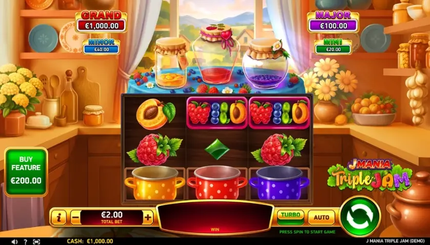 Prova la slot online J Mania Triple Jam gratis in modalità demo, senza download o registrazione.