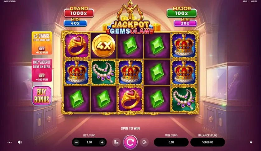 Prova la slot online Jackpot Gems Claw gratis in modalità demo, senza download o registrazione.