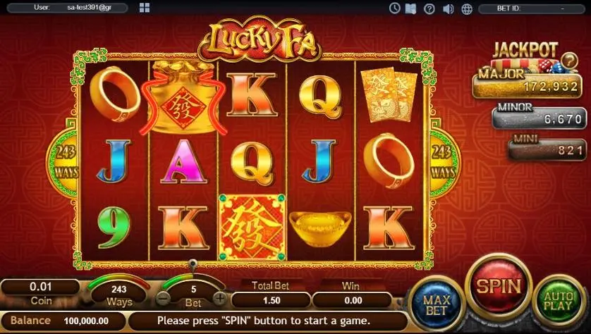 Lucky Fa è una slot machine creata da SA Gaming. In base al numero di giocatori che la cercano, Lucky Fa non è una slot molto popolare. Questo, però, non significa necessariamente che sia una cattiva slot: provala e decidi tu, oppure esplora i giochi da casinò più popolari.