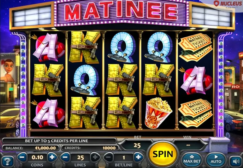 Matinee è una slot machine creata da Nucleus Gaming. In base al numero di giocatori che la cercano, Matinee non è una slot molto popolare. Questo, però, non significa necessariamente che sia una cattiva slot: provala e decidi tu, oppure esplora i giochi da casinò più popolari.