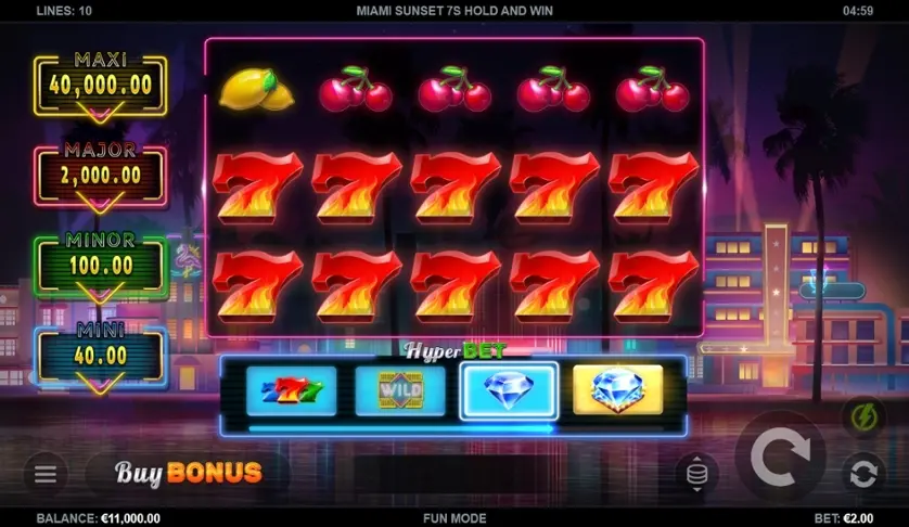 Prova la slot online Miami Sunset 7s Hold and Win gratis in modalità demo, senza download o registrazione.
