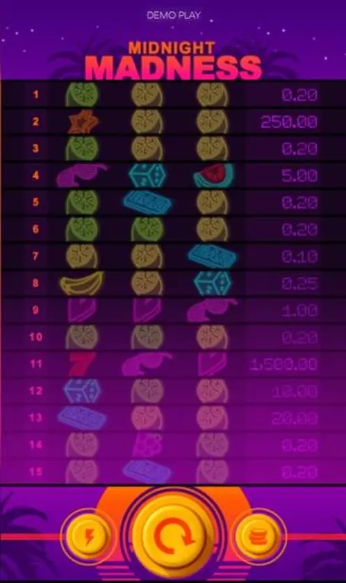 Prova la slot online Midnight Madness gratis in modalità demo, senza download o registrazione.