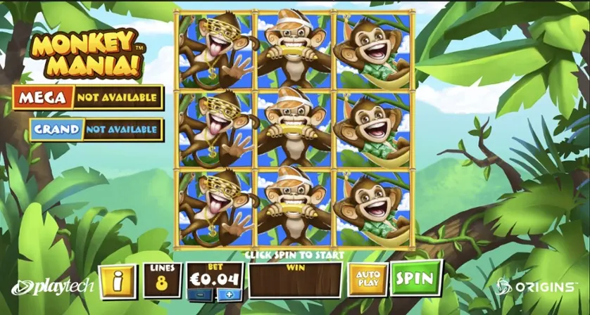 Monkey Mania è una slot machine creata da Origins (playtech). In base al numero di giocatori che la cercano, Monkey Mania non è una slot molto popolare. Questo, però, non significa necessariamente che sia una cattiva slot: provala e decidi tu, oppure esplora i giochi da casinò più popolari.