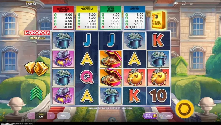 Prova la slot online Monopoly Rent Rush gratis in modalità demo, senza download o registrazione.