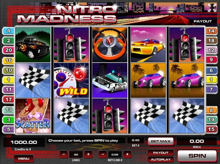 Prova la slot online Nitro Madness gratis in modalità demo, senza download o registrazione.