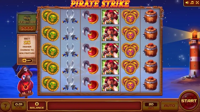 Prova la slot online Pirate Strike gratis in modalità demo, senza download o registrazione.