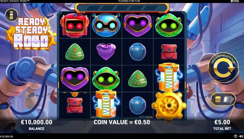 Prova la slot online Ready, Steady, Robo gratis in modalità demo, senza download o registrazione.