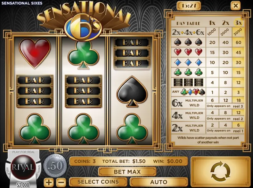 Sensational Sixes è una slot machine creata da Rival. In base al numero di giocatori che la cercano, Sensational Sixes non è una slot molto popolare. Questo, però, non significa necessariamente che sia una cattiva slot: provala e decidi tu, oppure esplora i giochi da casinò più popolari.