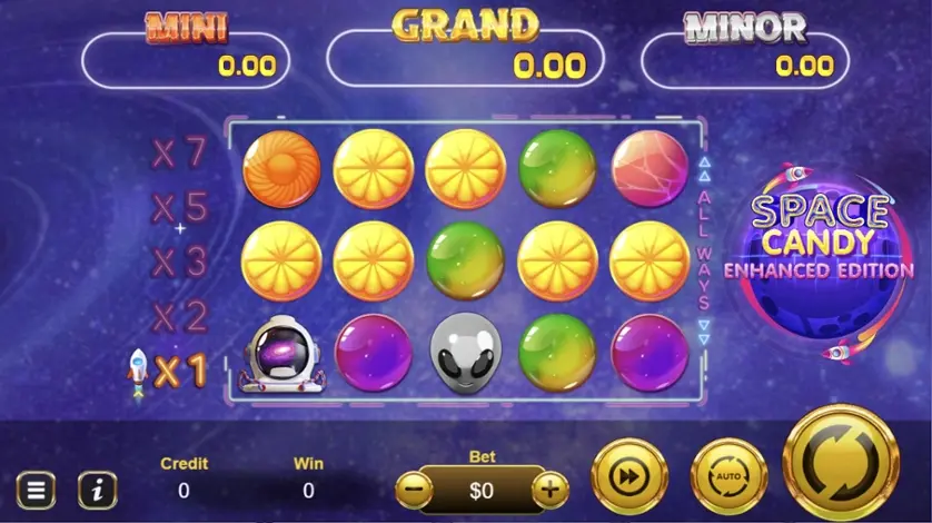 Prova la slot online Space Candy Enhanced Edition gratis in modalità demo, senza download o registrazione.