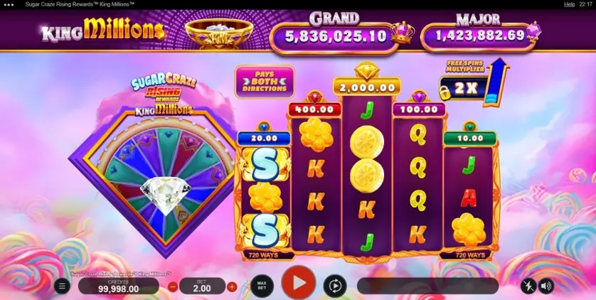 Prova la slot online Sugar Craze Rising Rewards King Millions gratis in modalità demo, senza download o registrazione.