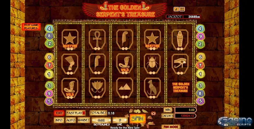 Prova la slot online The Golden Serpent Treasure gratis in modalità demo, senza download o registrazione.