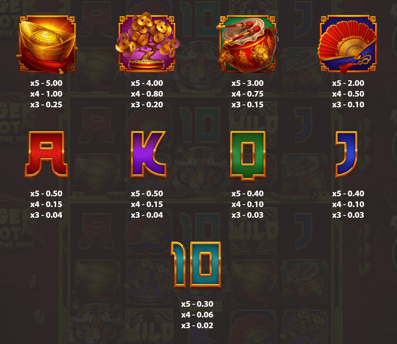 Tiger Pot: Hold the Spin è una slot 5x3 con 10 linee di pagamento fisse.