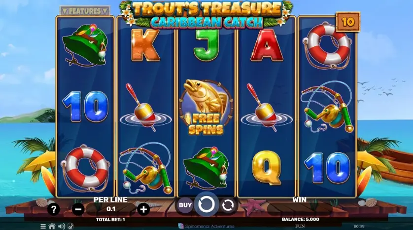Prova la slot online Trout's Treasure Caribbean Catch gratis in modalità demo, senza download o registrazione.