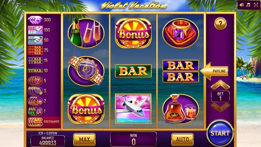 Prova la slot online Violet Vacation (3x3) gratis in modalità demo, senza download o registrazione.