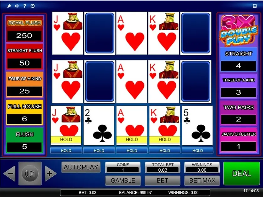 Prova 3x Double Play online gratis in modalità demo, senza download o registrazione.