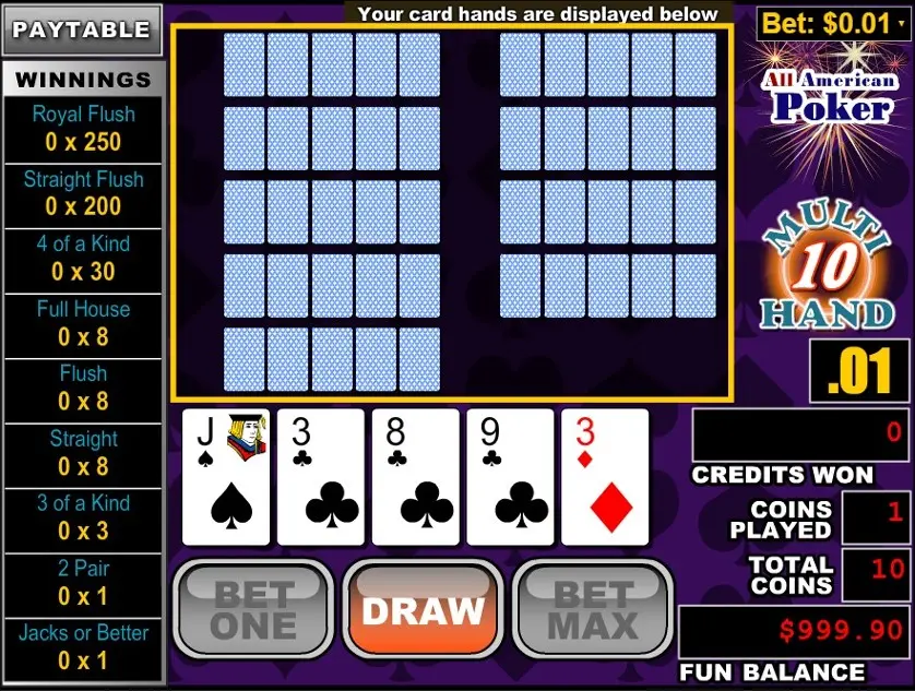 Prova All American Poker - 10 Hands online gratis in modalità demo, senza download o registrazione.