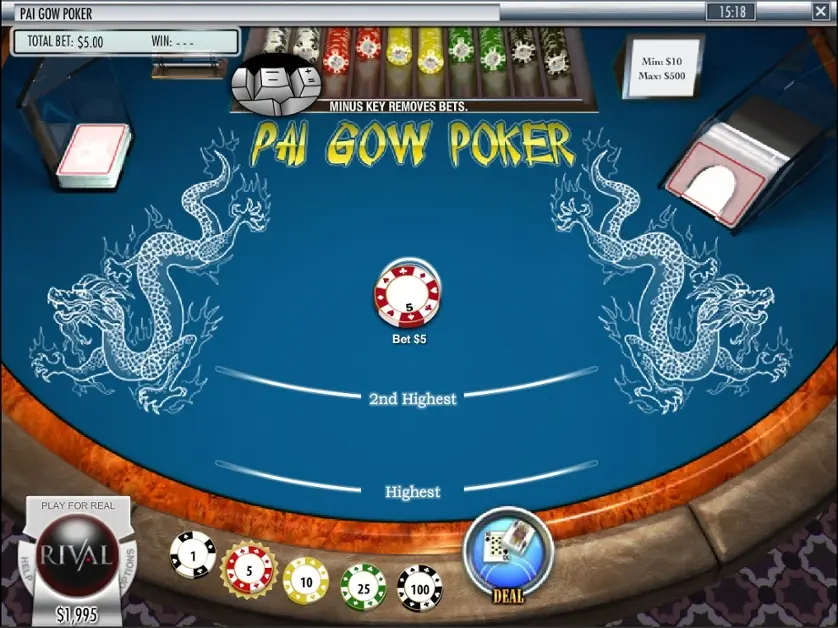 Pai Gow Poker è un gioco di video poker di Rival. Qui sopra, puoi giocare gratis in modalità demo.