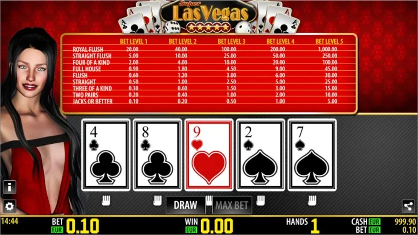 Super Las Vegas è un gioco di video poker di Worldmatch. Qui sopra, puoi giocare gratis in modalità demo.